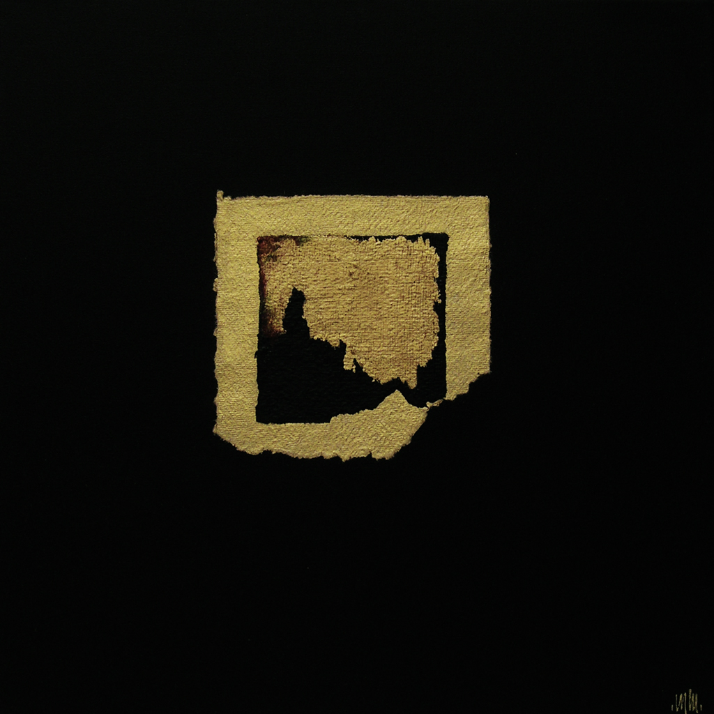 In and out, acrylique, feuilles d’argent, laques 120x120cm